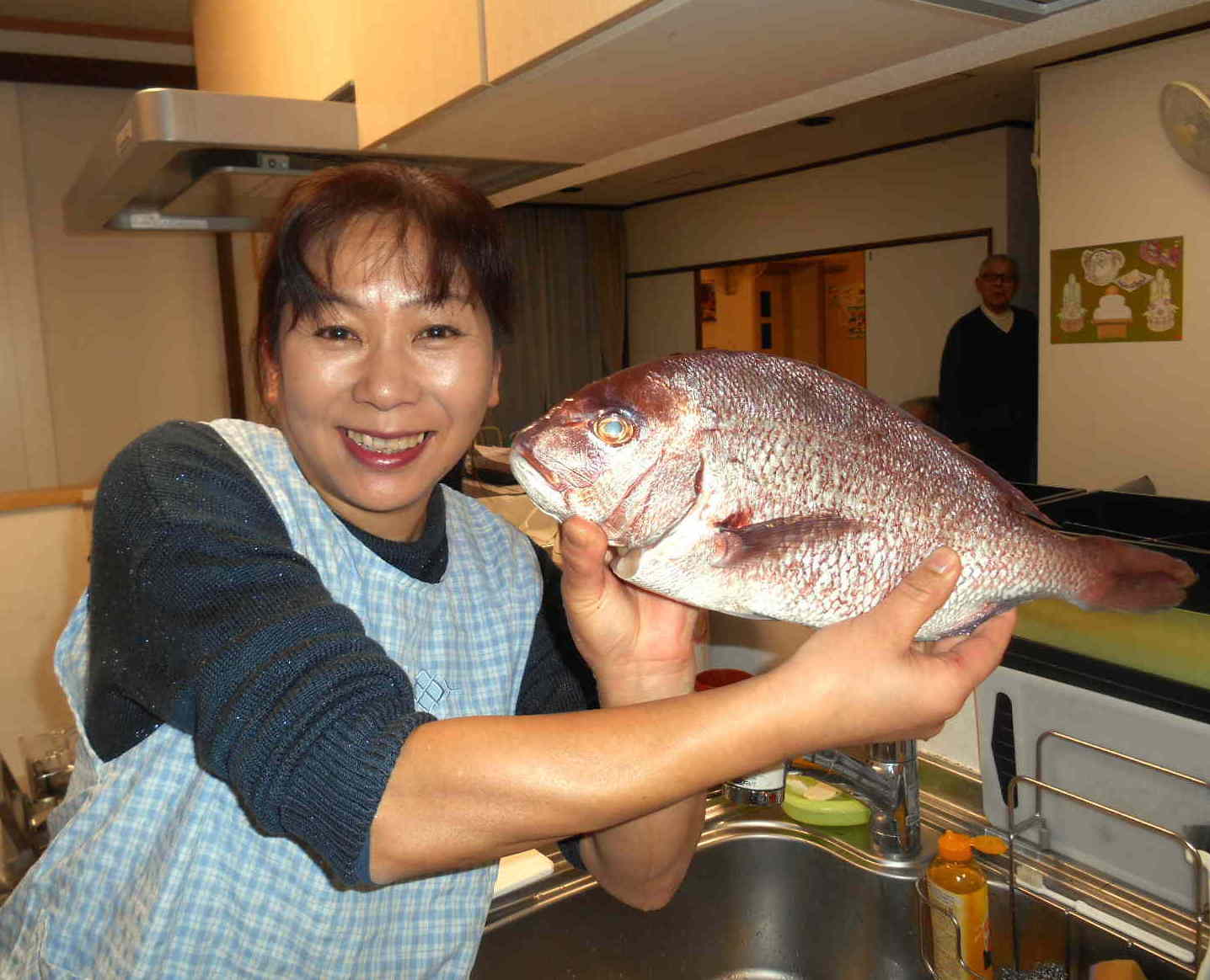 (左写真)毎年恒例、横田スタッフの鯛の塩焼き